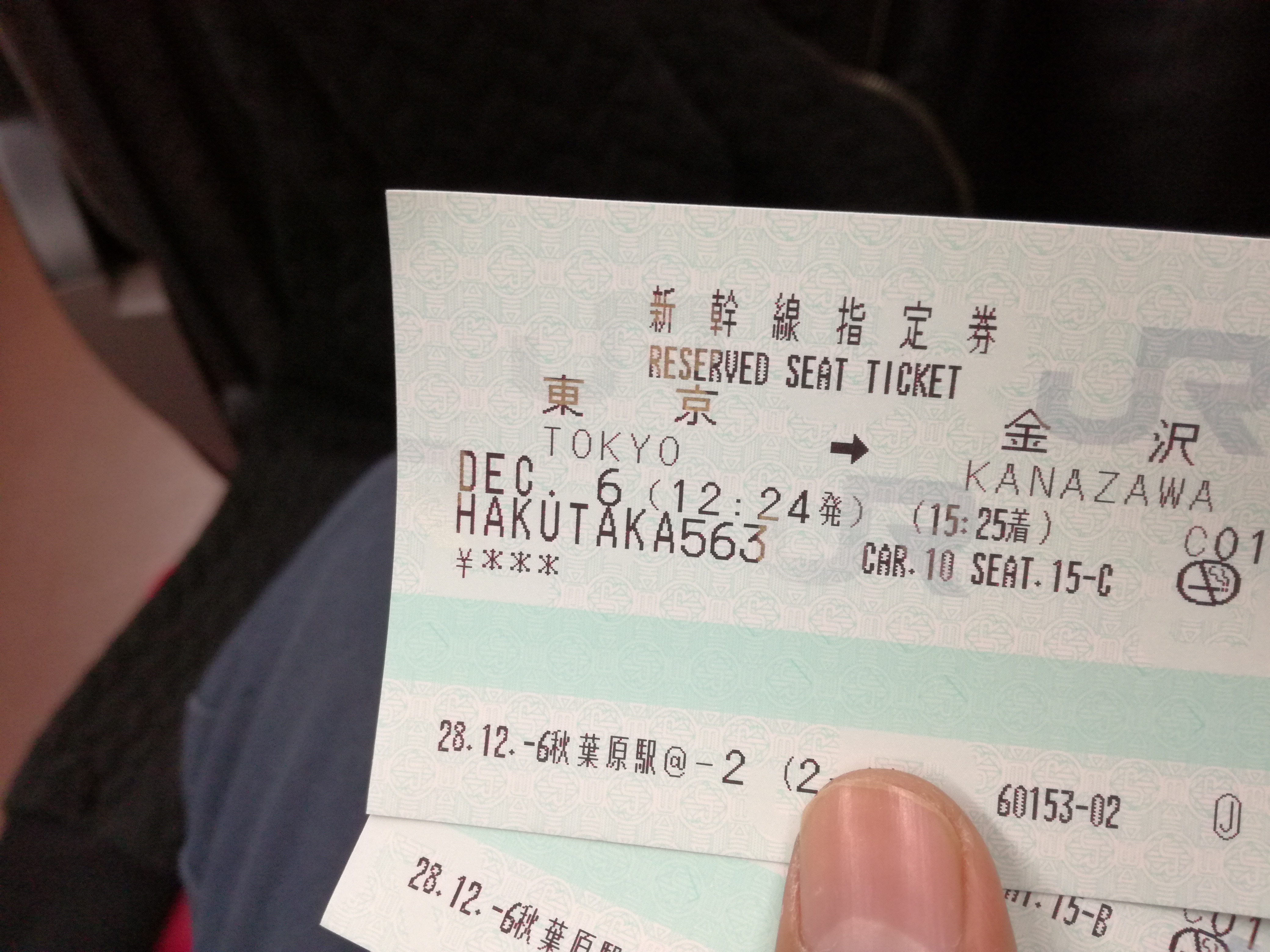 Kami miliki JR Pass tujuh hari. Untuk memudahkan perjalanan, kami telah membuat keputusan untuk menempah kerusi dalam gerabak. Tiada kos tambahan diperlukan. Perjalanan yang dirancang adalah untuk ke Kanzawa, kemudian ke Kyoto dan seterusnya ke Tokyo kembali.